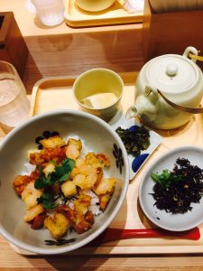 本日のチョイスは「小エビ・貝柱・磯部揚げのだし茶漬け」です。