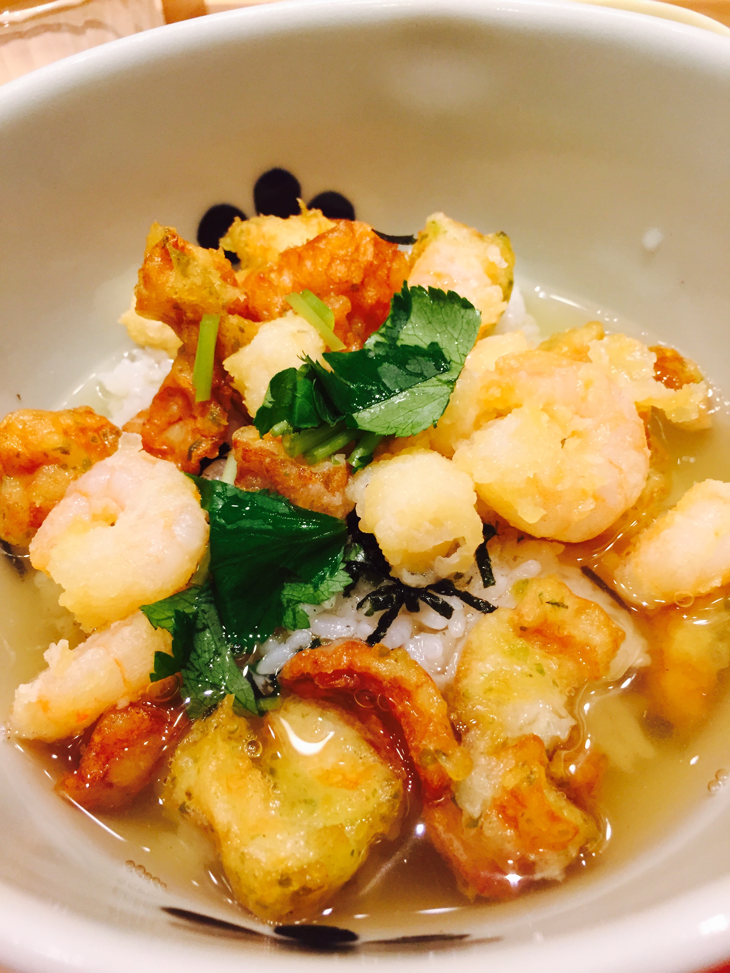 本日のチョイスは「小エビ・貝柱・磯部揚げのだし茶漬け」です。