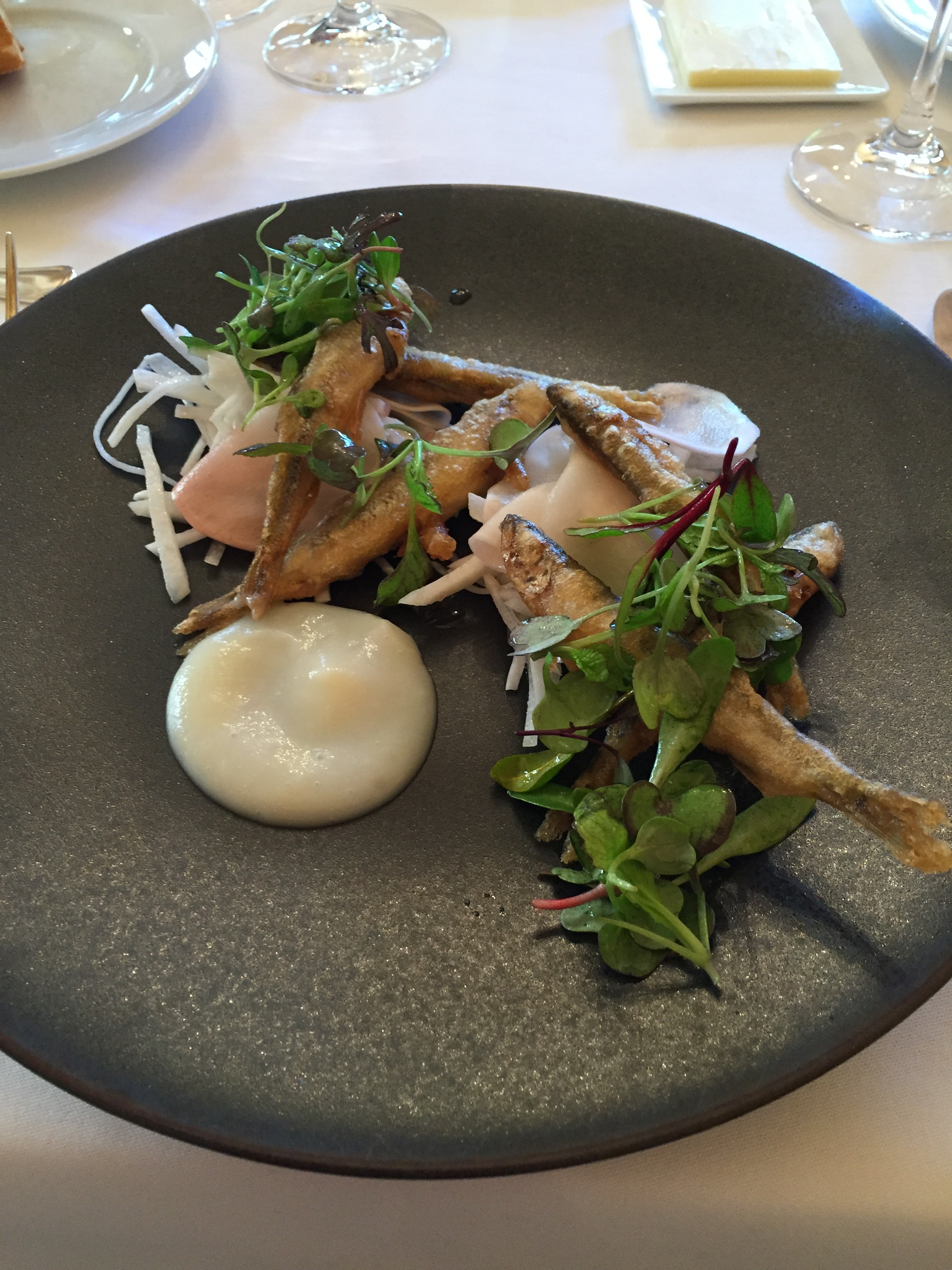 あ私の前菜はワカサギのフリット、カブの酢漬け添え。