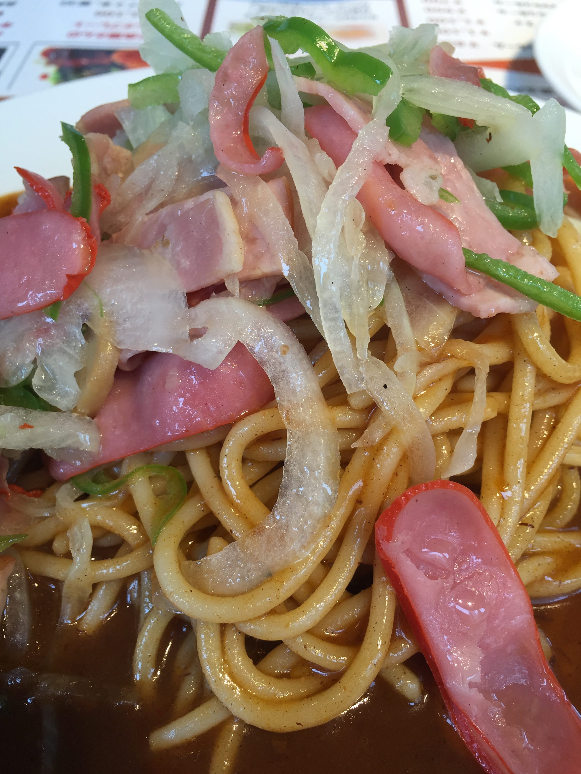 炒めたパスタ、具材と絡めて食べると独特ですが、