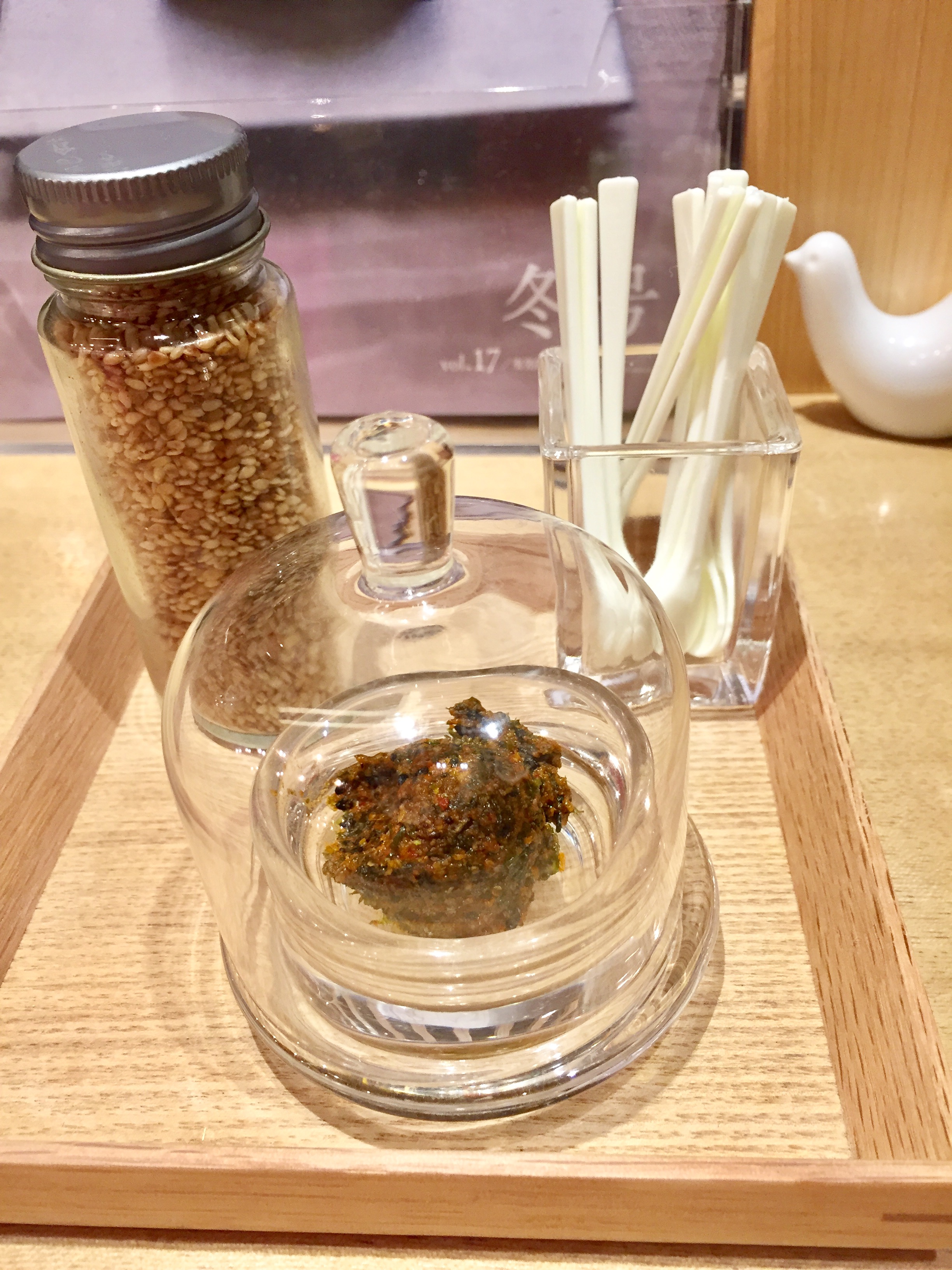 「汁や」のテーブルにいつも用意されている薬味とふりかけです。
