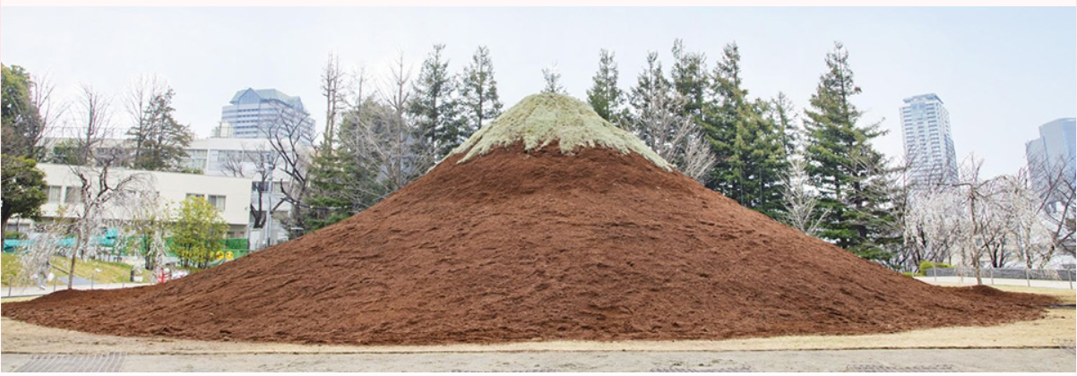 この富士山の素材は街路樹などの剪定材をチップ化したバーク堆肥などを使用し、