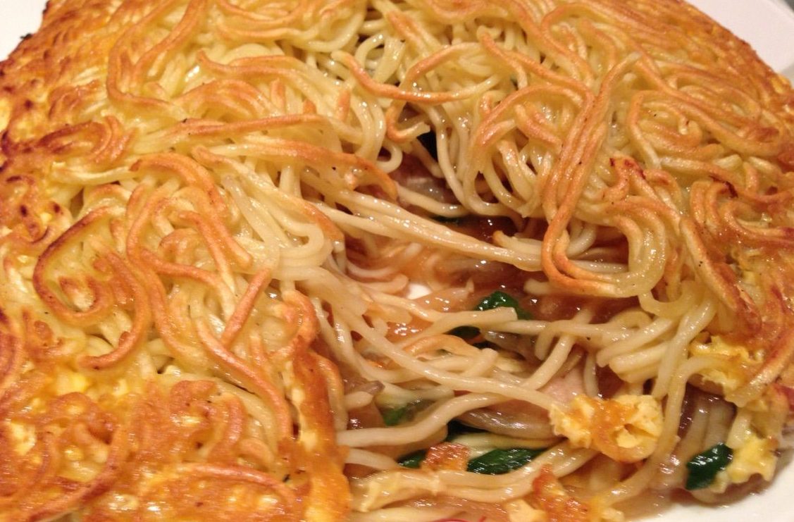 カリカリに焼き上げられた中華麺の中には