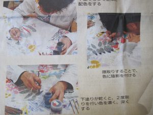 型染めで特徴的なのは、型の上から色を挿すのではなく
