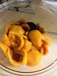 ハチミツ(適量)に30分くらい漬けます。