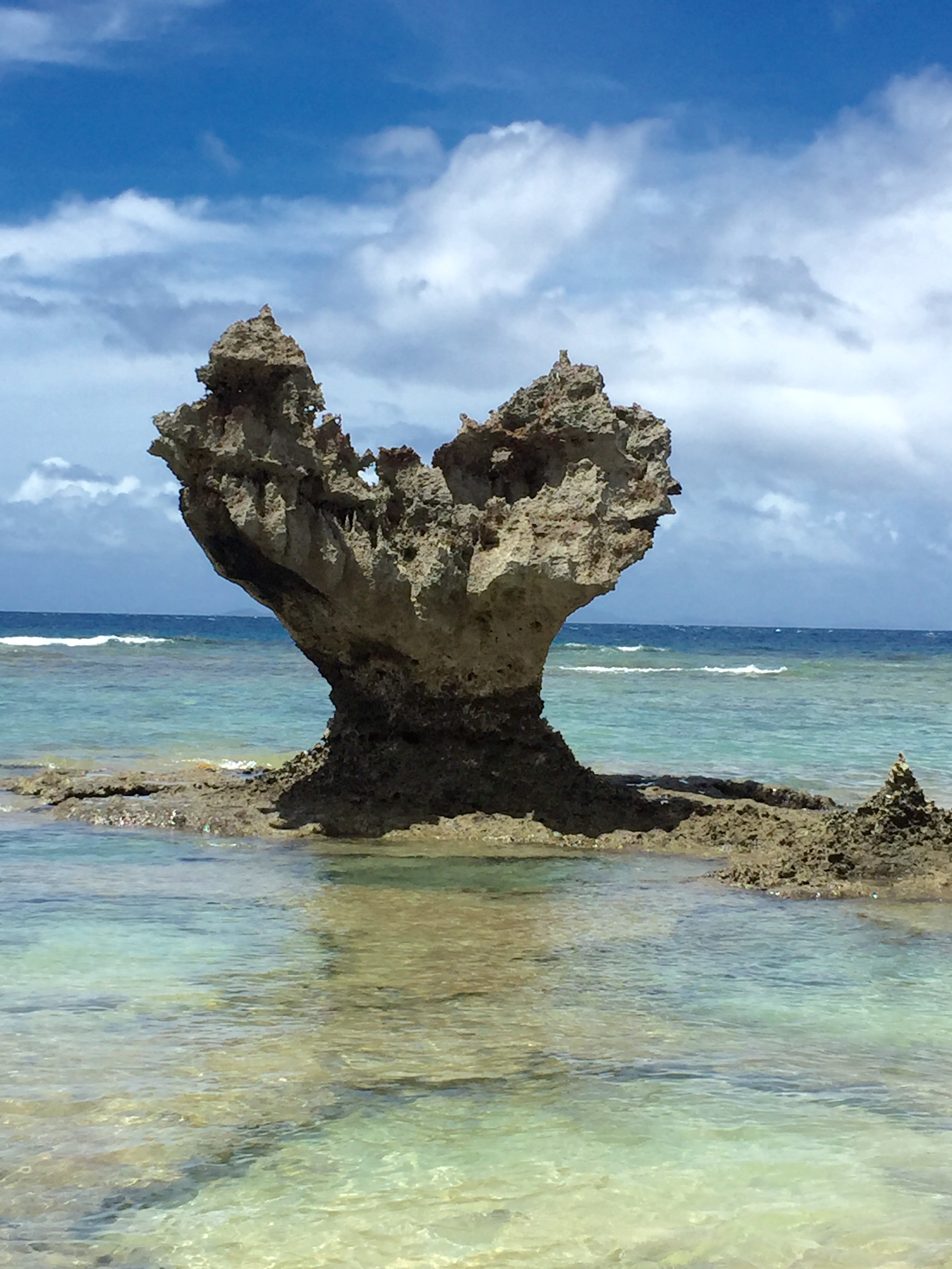 透明度抜群の美しい海にかわいらしいハートの岩❤
