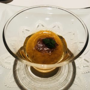 一口アミューズは「ニンジンのムースコンソメジュレ」
