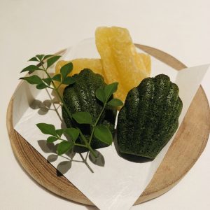 お茶と一緒に「ドライアップルと抹茶のマドレーヌ」