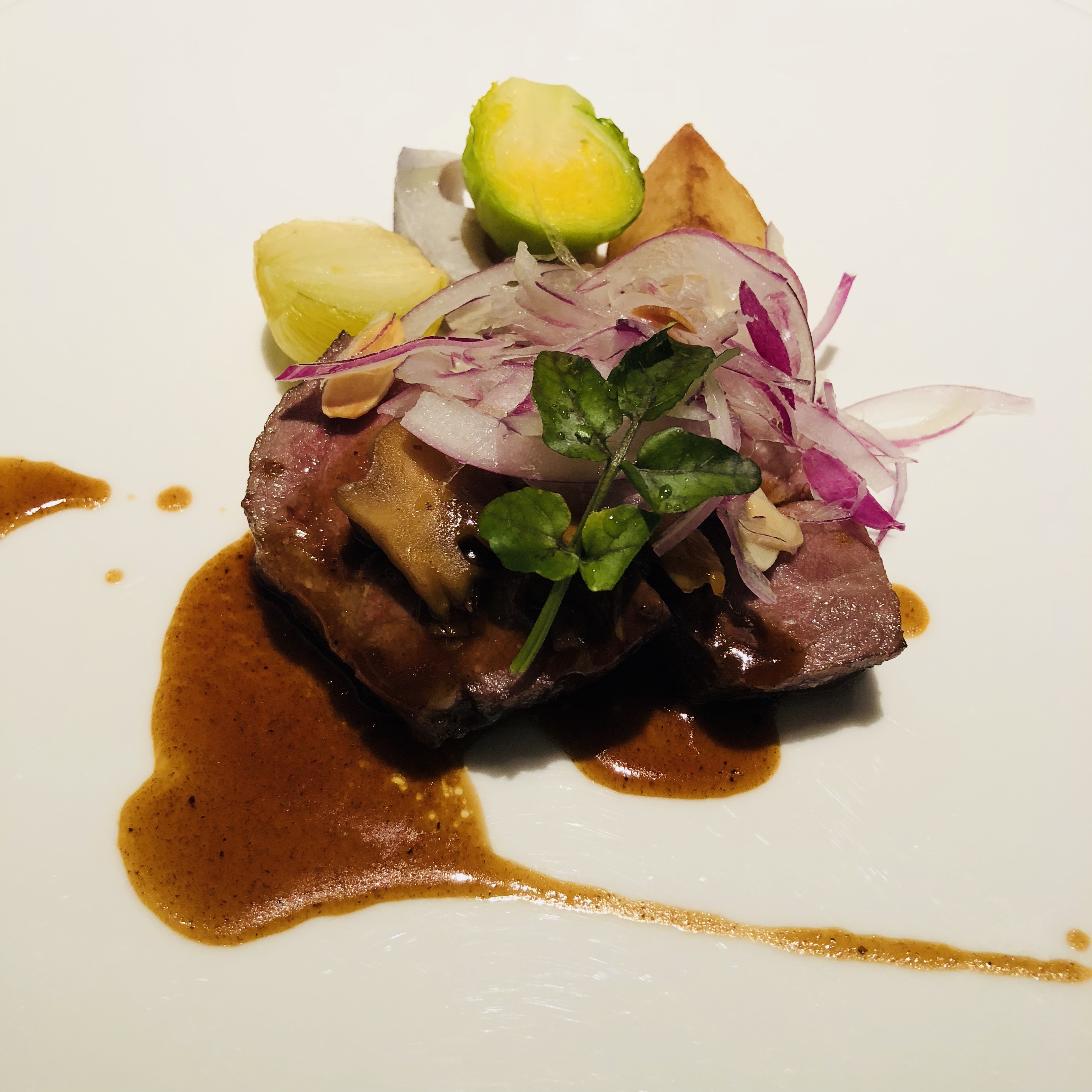 様々な野菜やキノコの火の入り方も絶妙で素晴らしい一皿でした。