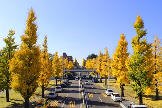 イチョウ並木が作り出す黄金のトンネルを覗く事が出来ます
