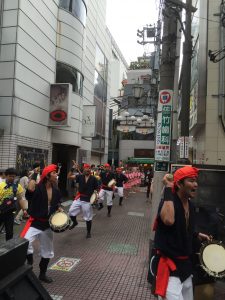 本場沖縄のエイサーが登場して、中野の街を練り歩きます。