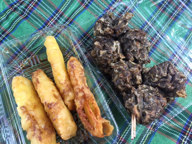 晴天の中、ウチナー天ぷらを頬張る時間は