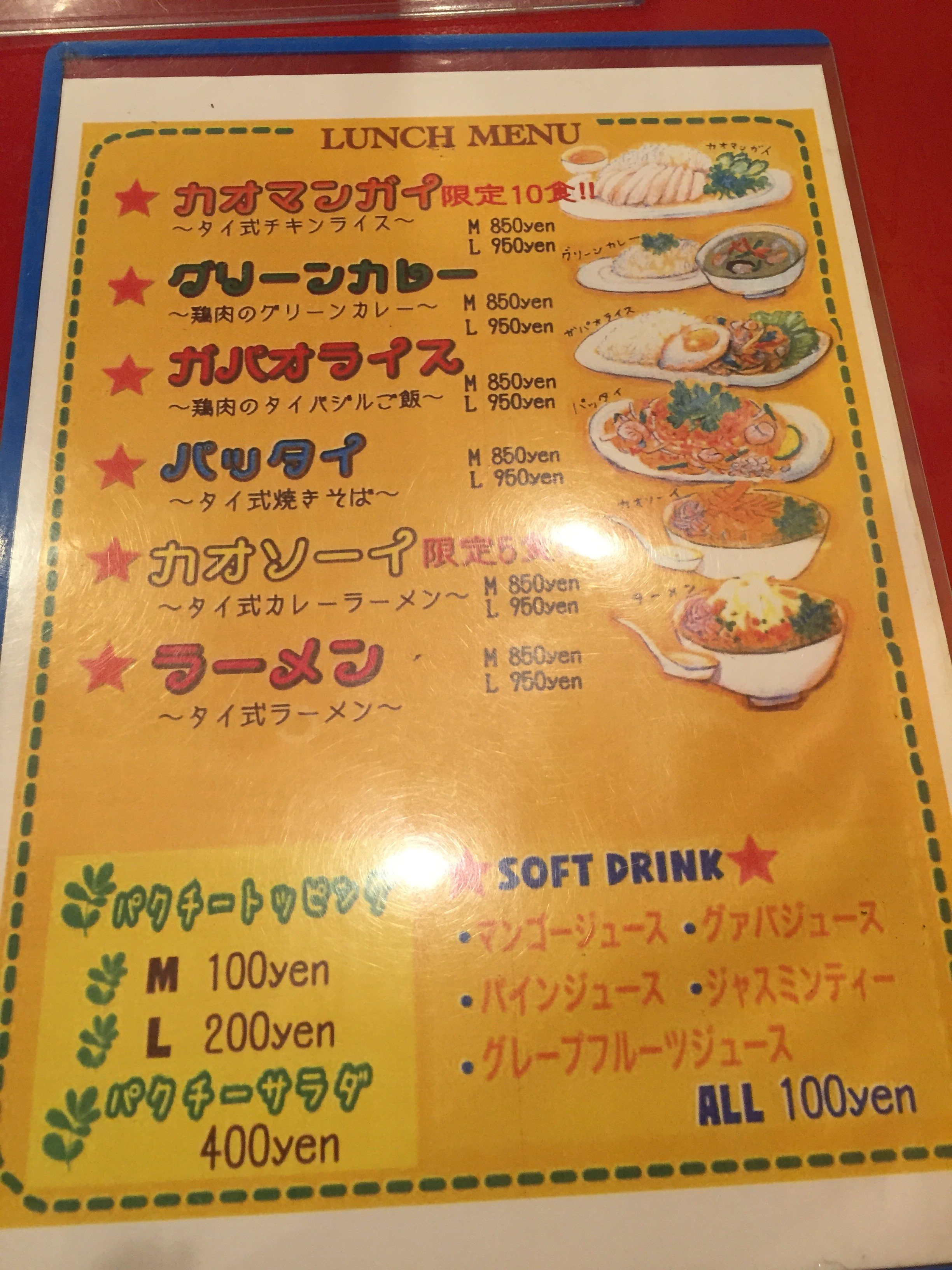 店内はタイの音楽が流れ、店員さんは日本人なのに