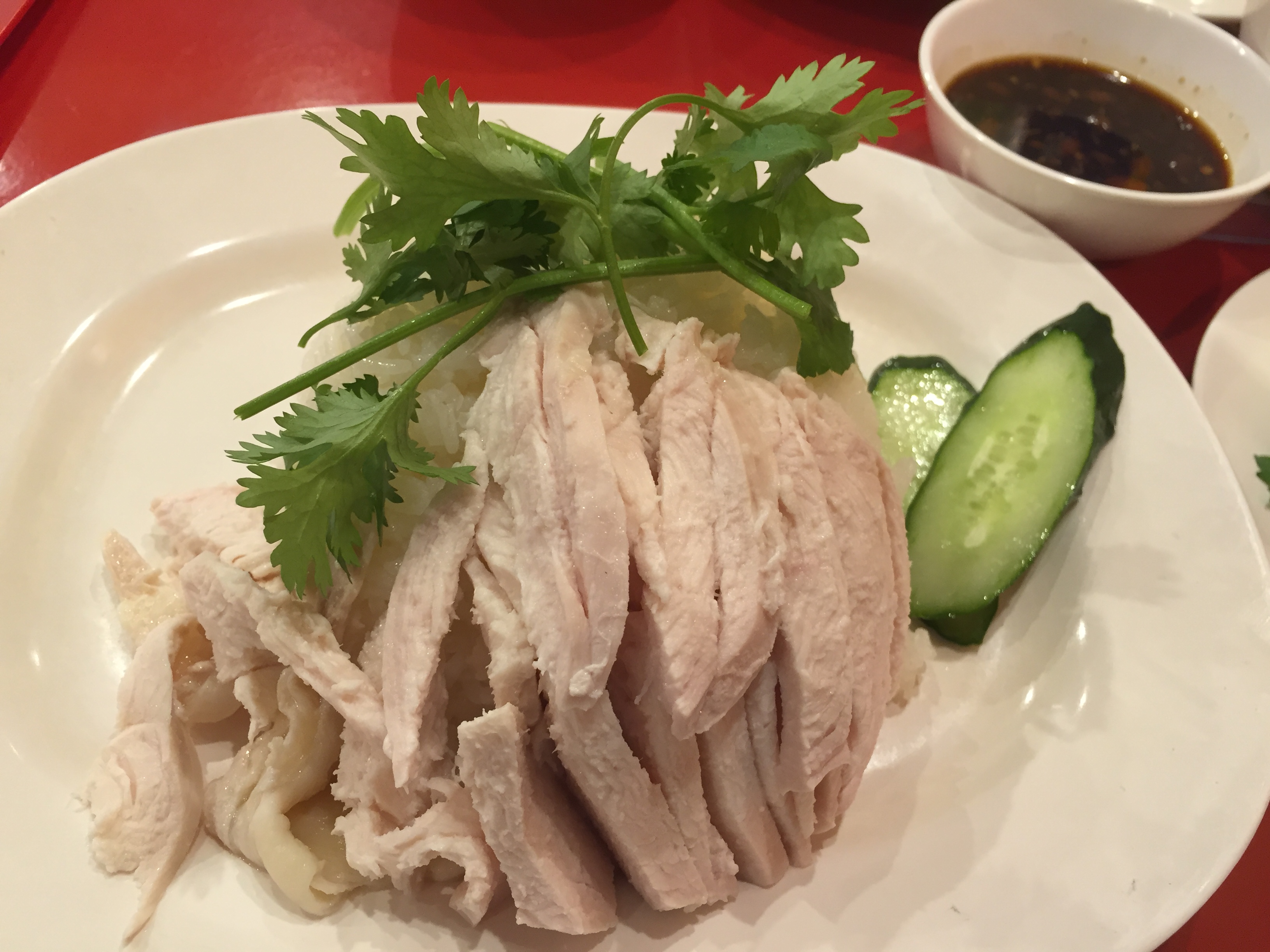 鶏だしで炊いたご飯に香味野菜で茹でた鶏肉がのっており、