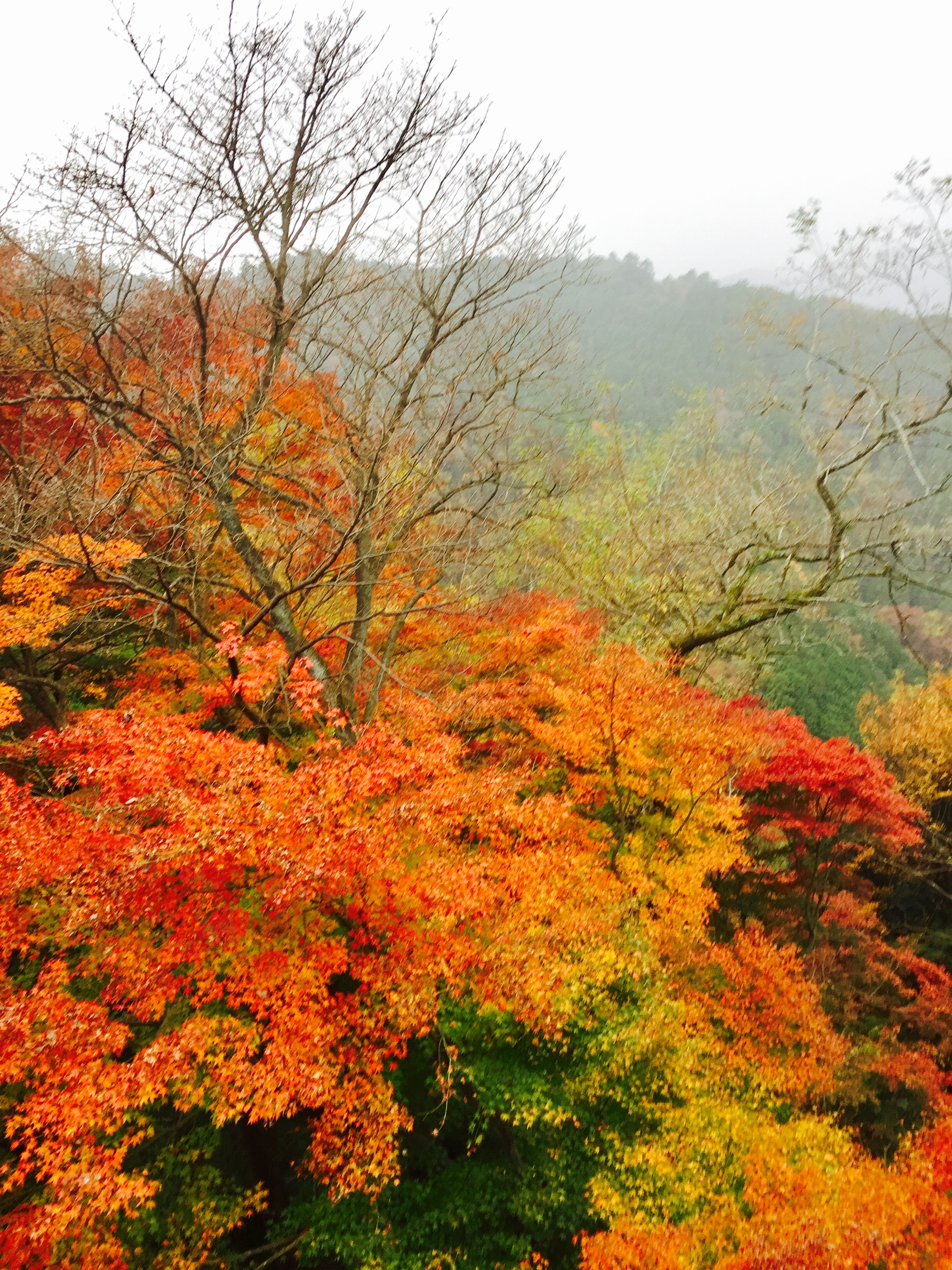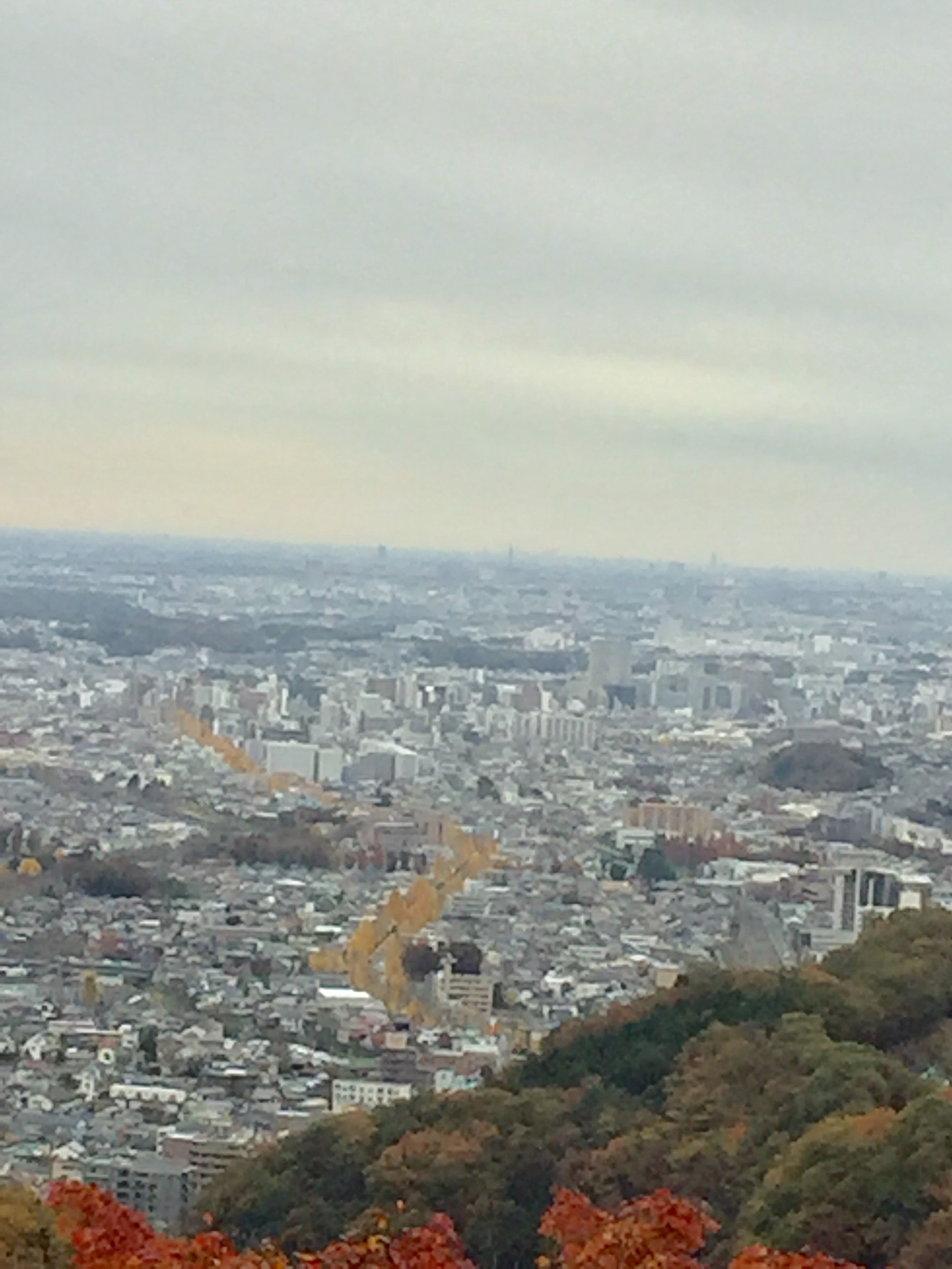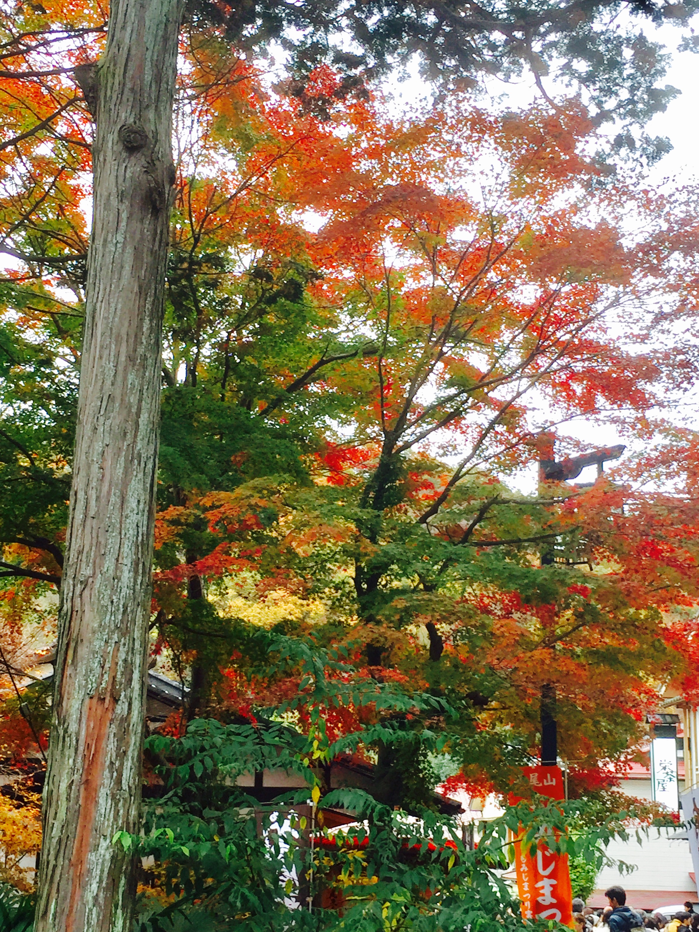 京王線高尾山口駅を降りると目の前に美しい紅葉が広がりました。