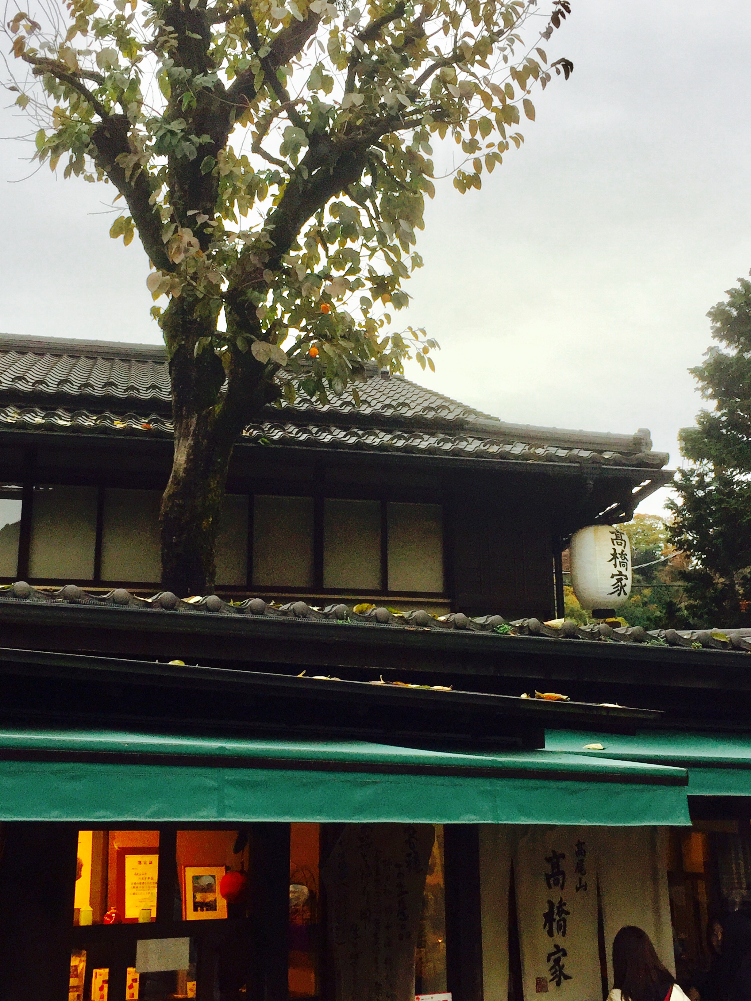 上の写真の柿の木。実は屋根から突き抜けているのです。
