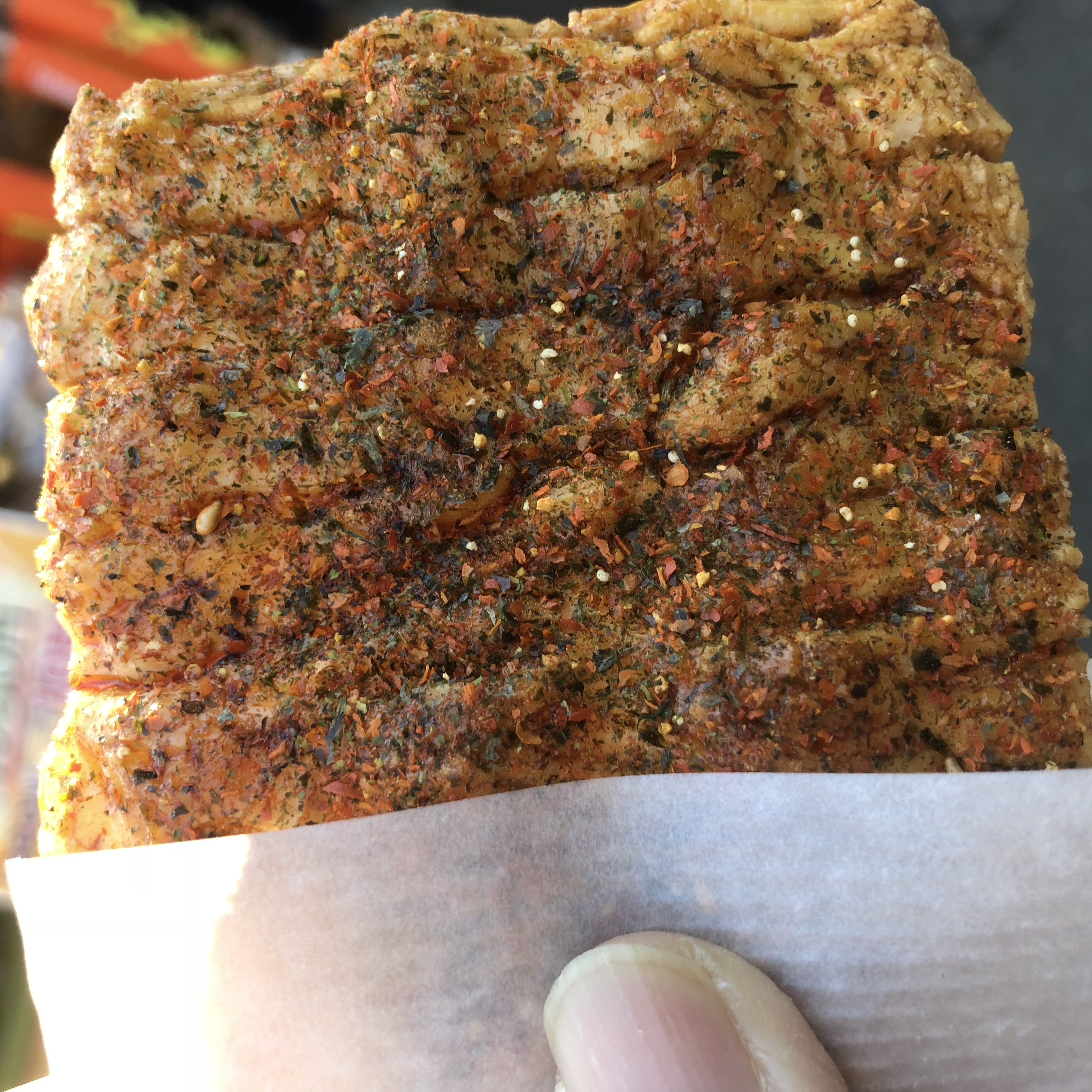 甘い焼き草餅の次は「七味唐辛子せんべい」を