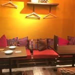 店内は長い椅子やクッションがいっぱいでアジアンテイストで