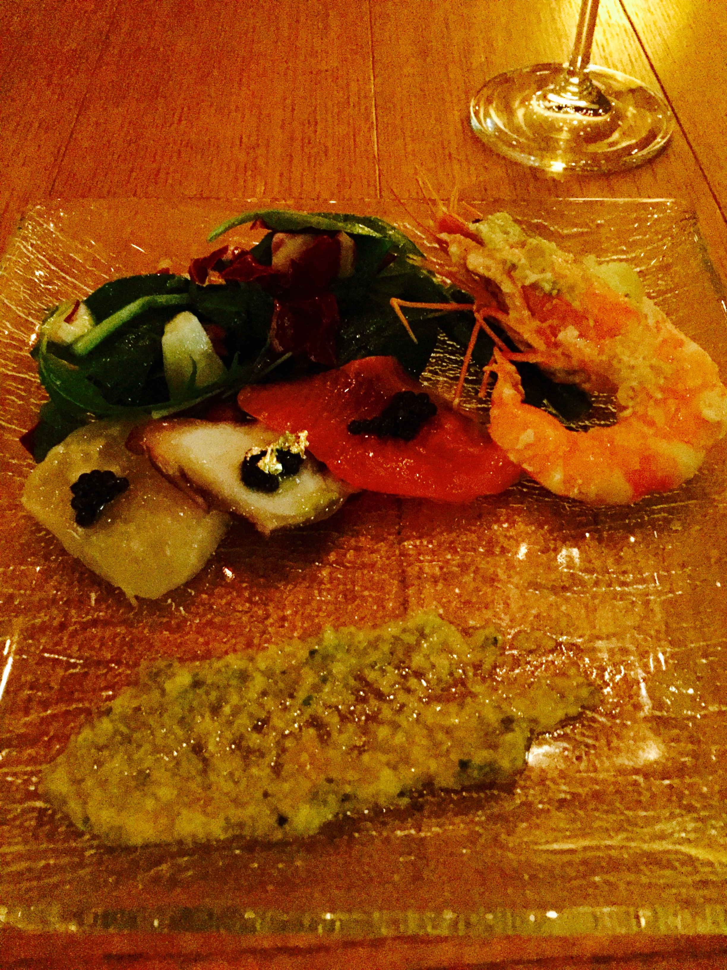 前菜2「北海道産魚介のマリナート 生キャビアをちらして」