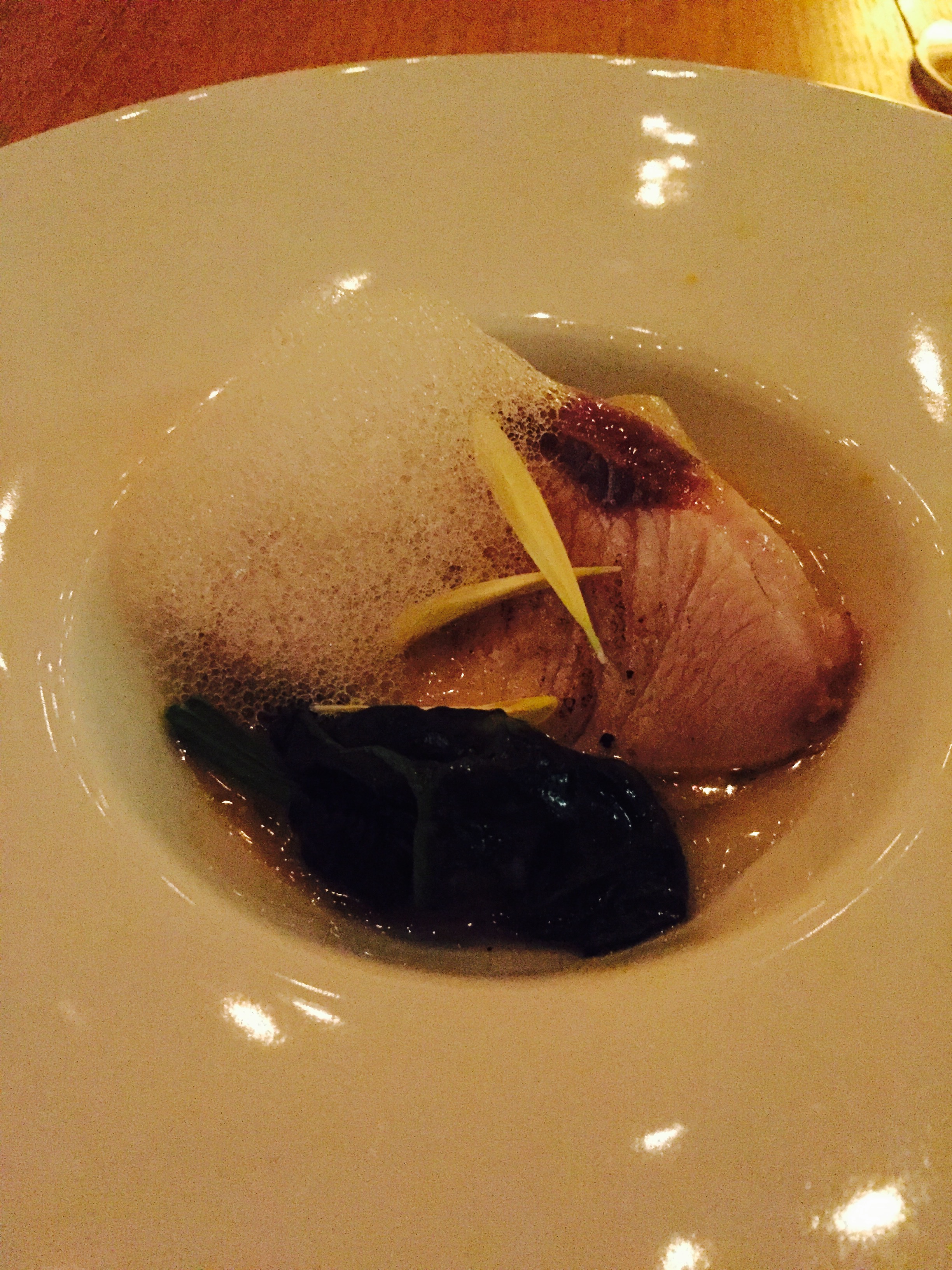 前菜3「寒ブリの炙りと大根のフリカッセ黄柚子の泡」