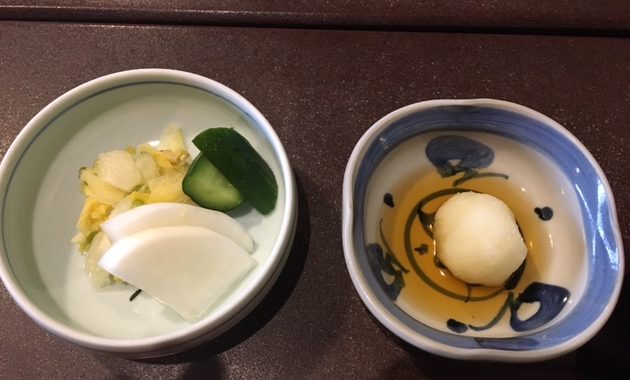 香の物や、大根おろしの箸休め、肝吸も付いてきます。