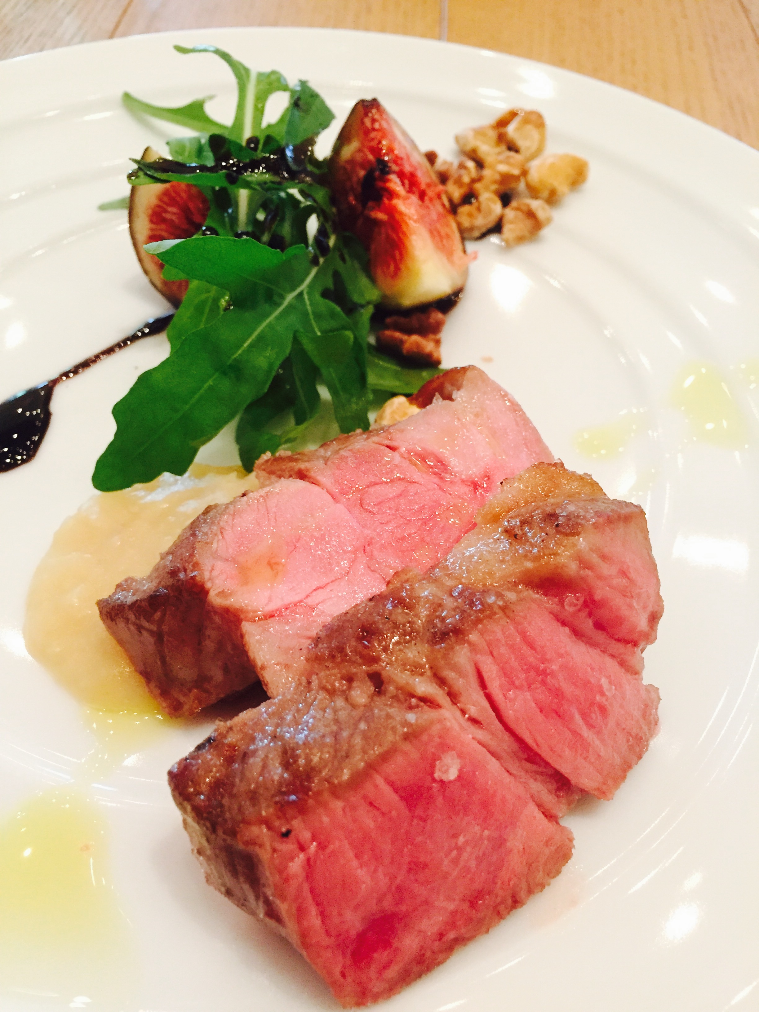 熟成豚の炭火焼き 黒イチジクとルッコラ添え