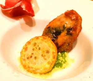 「ほろ苦いほうれん草とリコッタチーズのニョッキ パルマ産生ハム添え」
