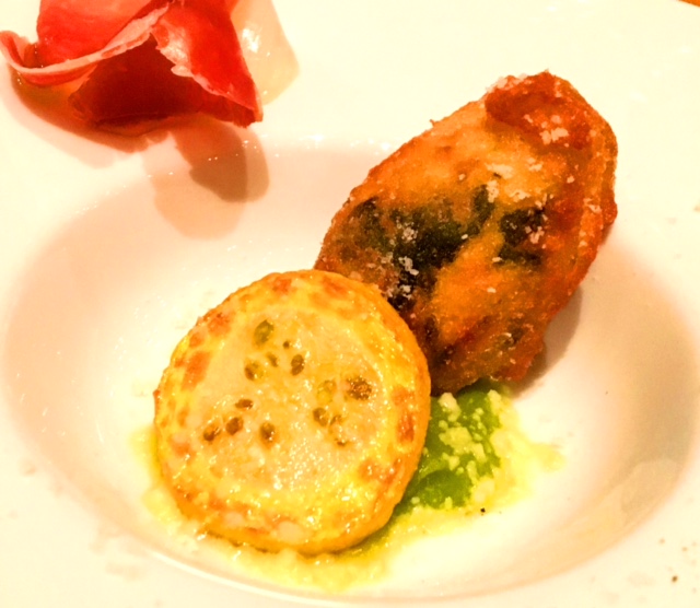 「ほろ苦いほうれん草とリコッタチーズのニョッキ パルマ産生ハム添え」