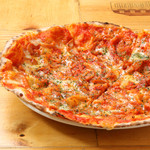 チョリソのピザは、トマトソースにとうがらしパウダーが