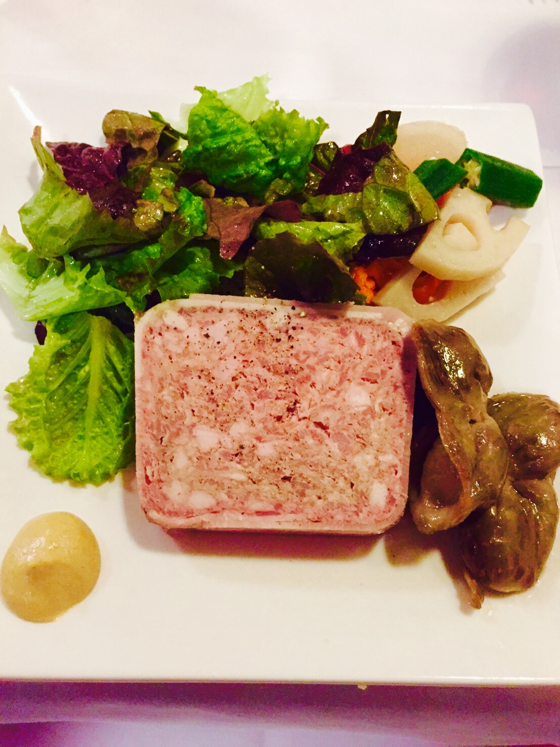 前菜に選んだのは 「パテドカンパーニュ 砂肝のコンフィー添え」
