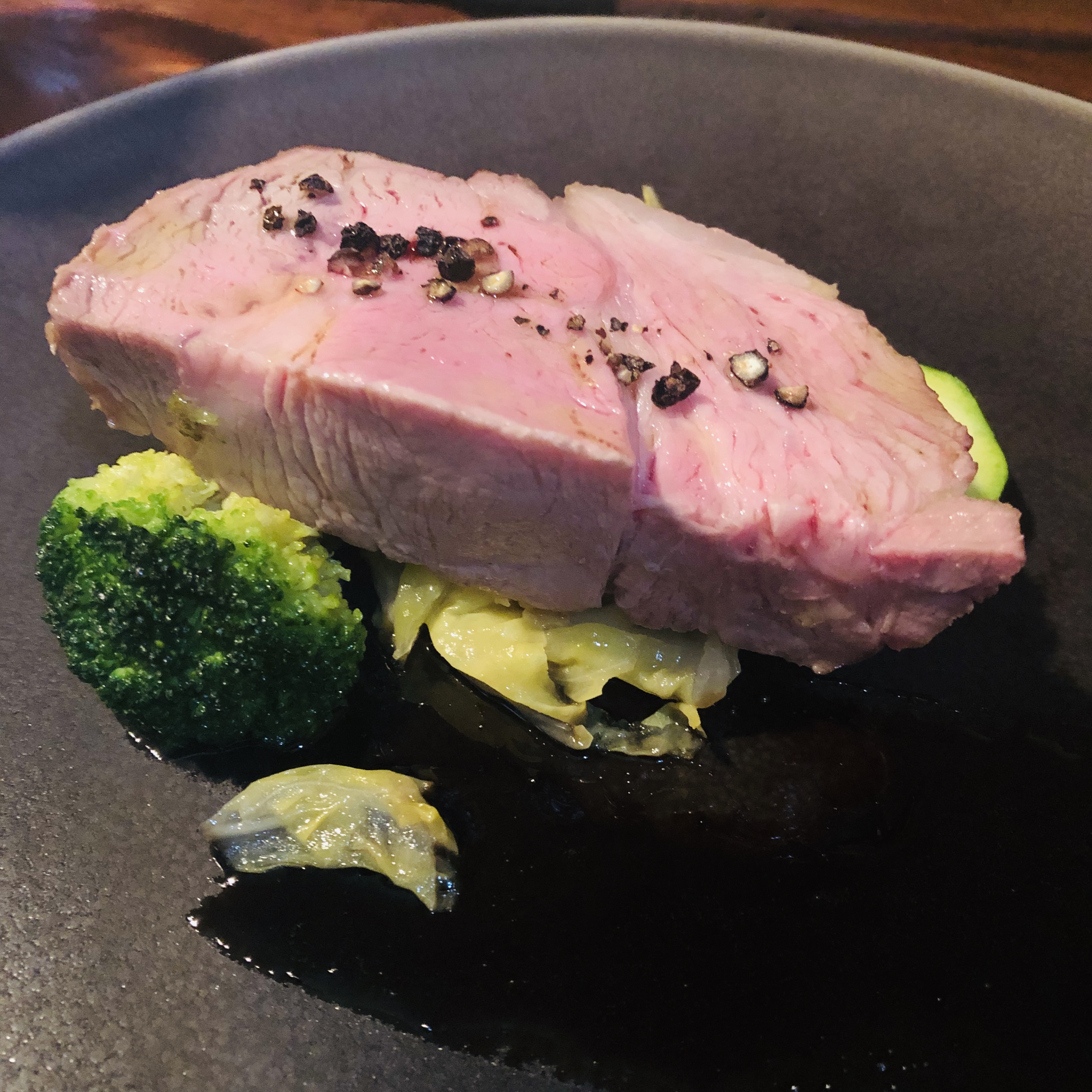低温調理された豚がものすごく柔らかでしかもジューシー。