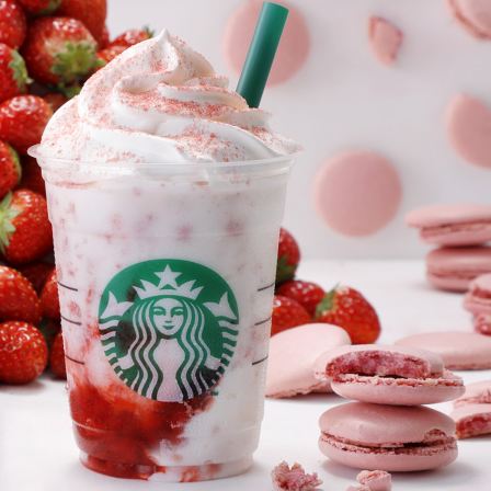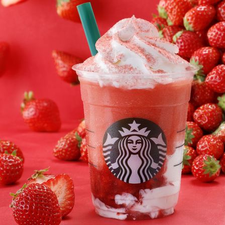 ベース、ソース、パウダーなどの素材にイチゴをたっぷり使用。