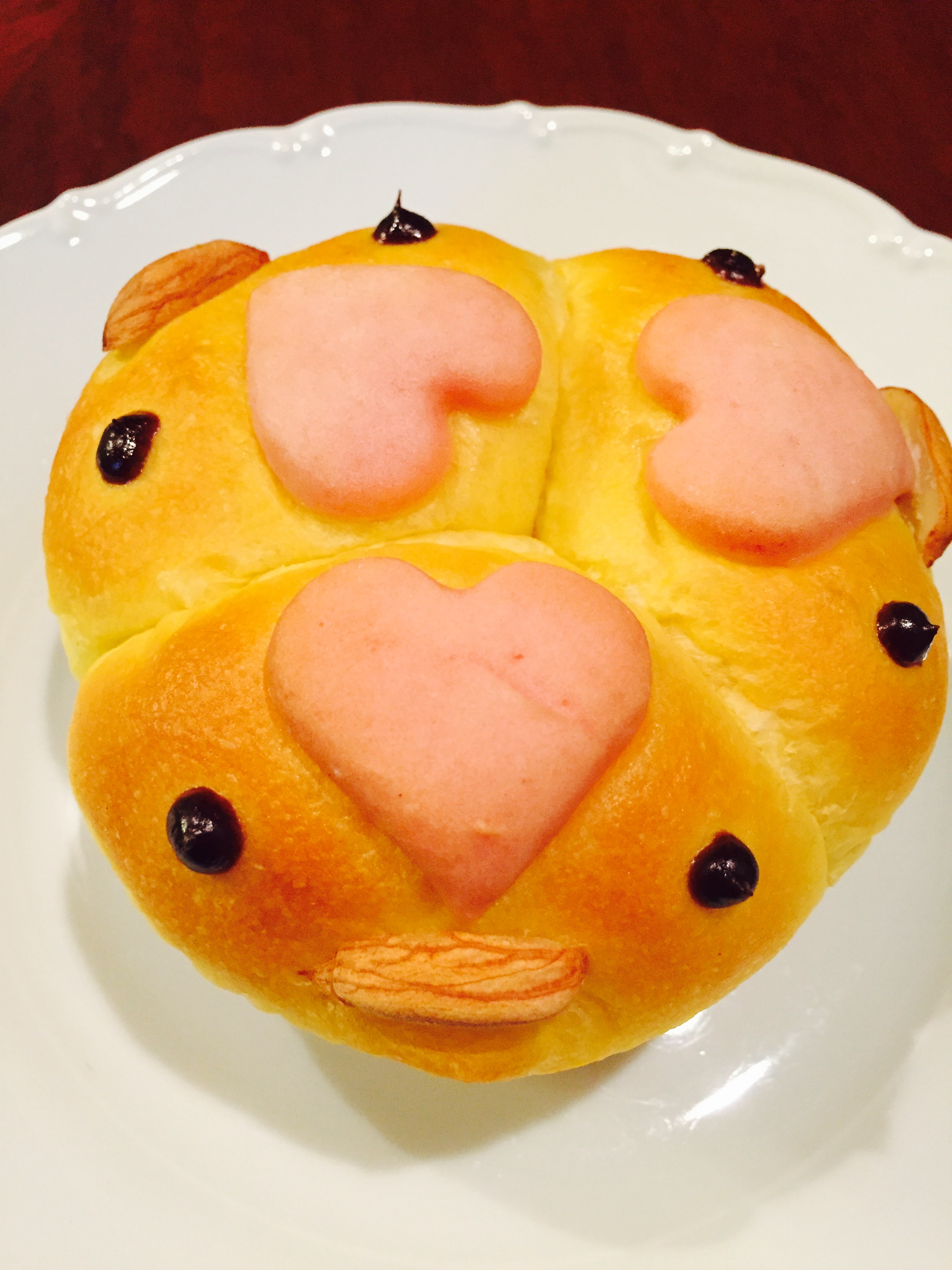お顔が3つありますがそれぞれ、カスタードクリームと