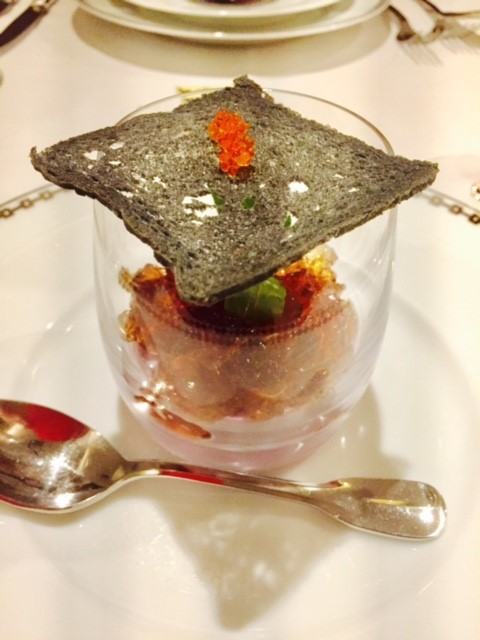 紅イモのコンソメジュレ。