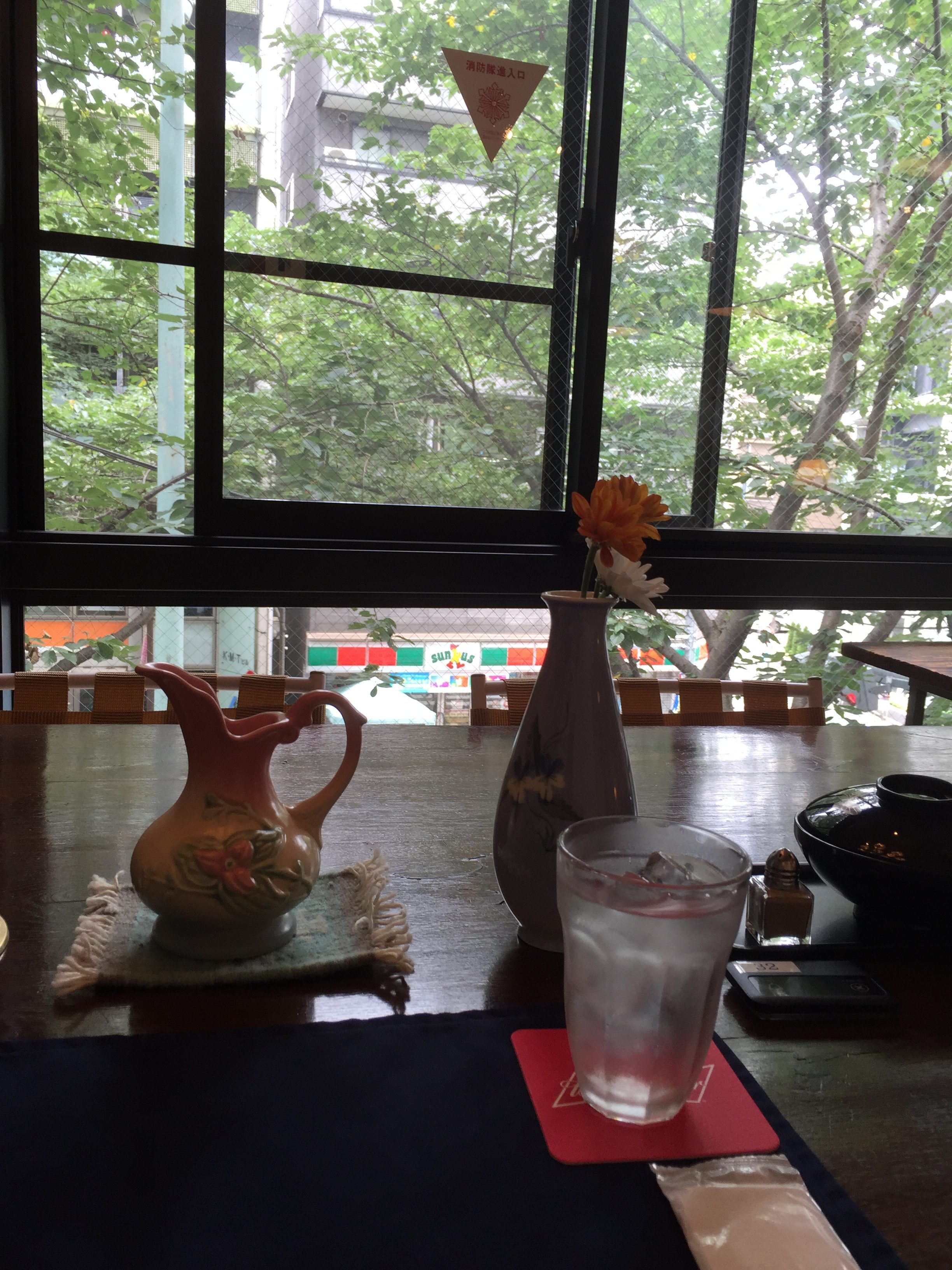 並木道の緑が生えて、まったりくつろげる空間でした。
