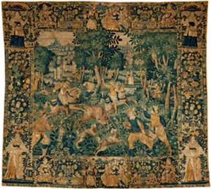 多様の羊毛で豪華に織り上げたタペストリーや