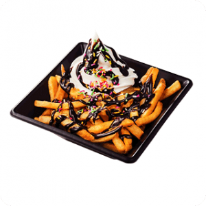 熱々皮付きフライドポテトに、冷たい北海道ソフトクリームを乗せた