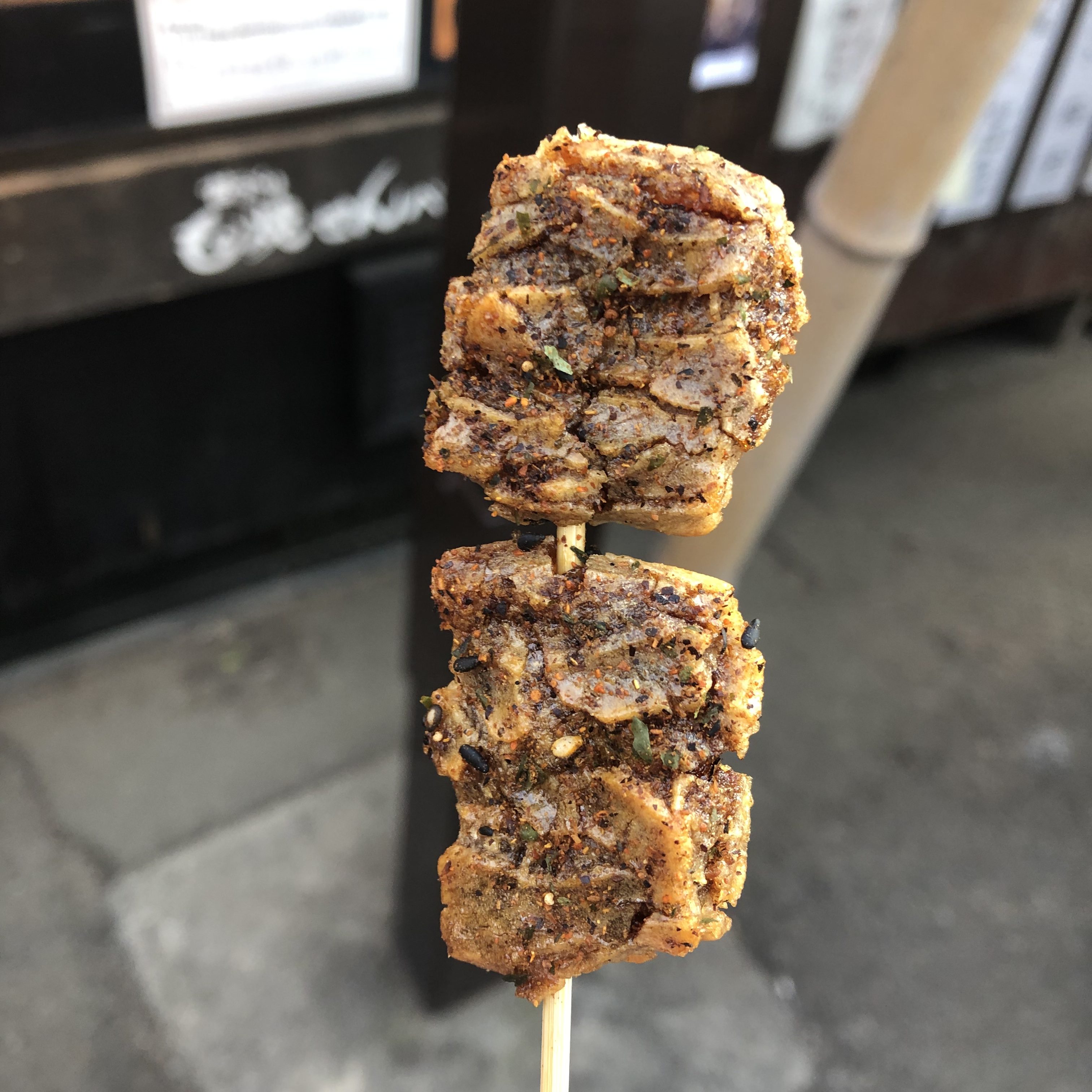 もちっとした食感の甘辛いぬれせんべいにピリ辛七味唐辛子がたまりません。