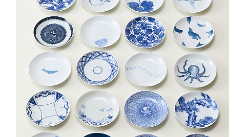 丸皿や角皿に、唐子や宝づくしといった古典文様に加え、