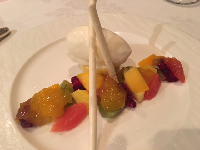 「ヨーグルト風味のアイスクリーム 沖縄産のフルーツのジュレと共に」