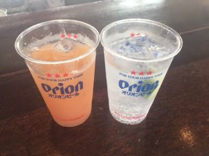 海を眺めながらのオリオンビールは何とも贅沢な時間。