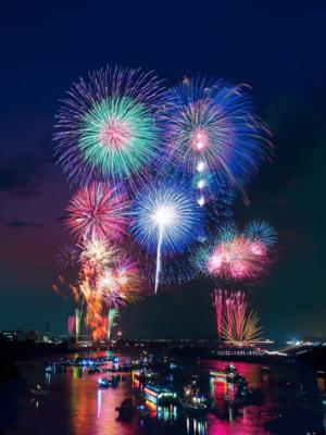 東京江戸川区と千葉県市川市で同時開催する、大規模な花火大会。