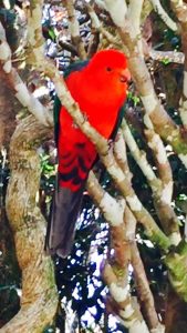 ゲストハウスの前庭には色鮮やかなインコが集まって来ていて、