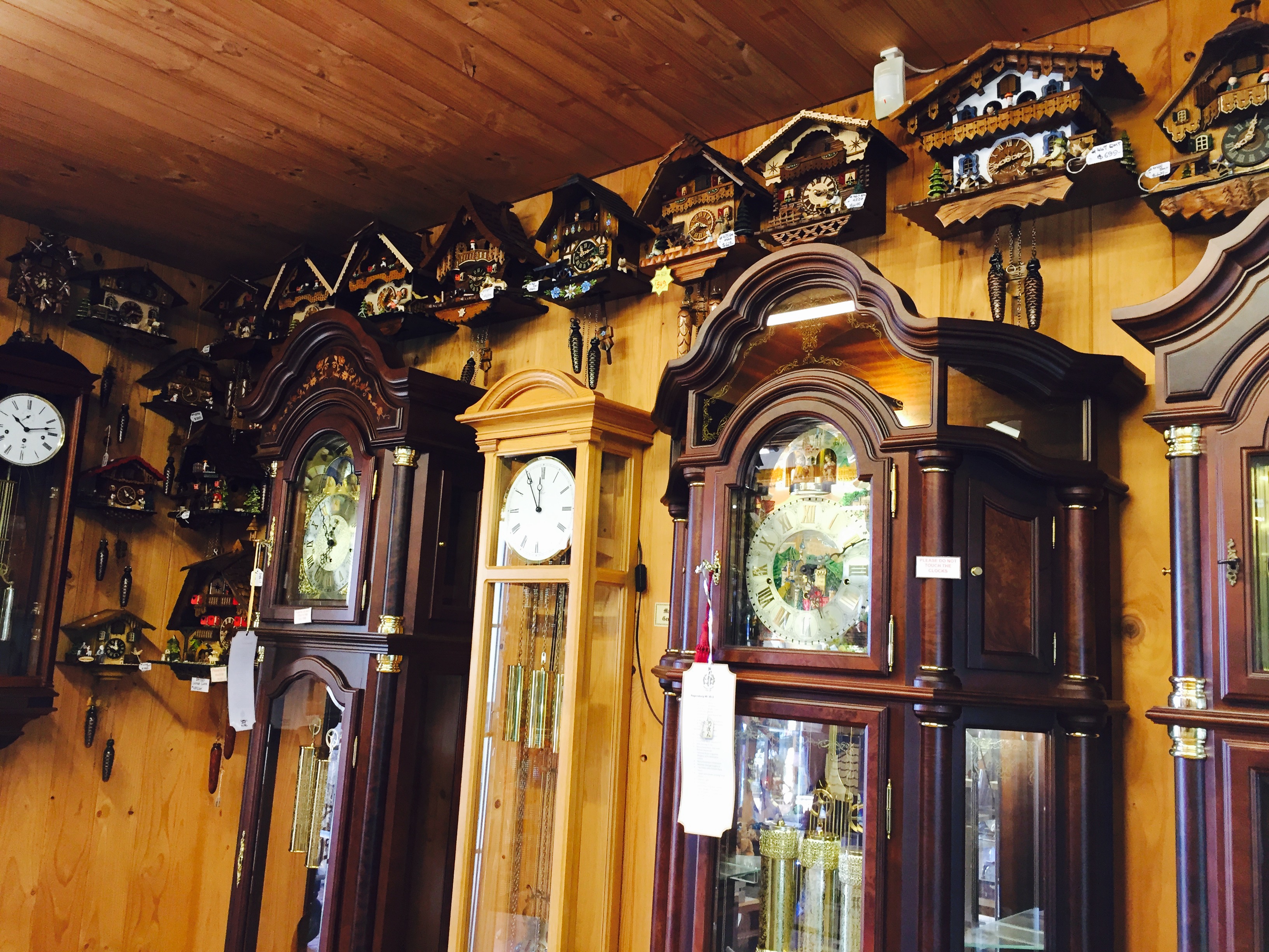 からくり時計がずらっと、ちょっと不思議な世界感。