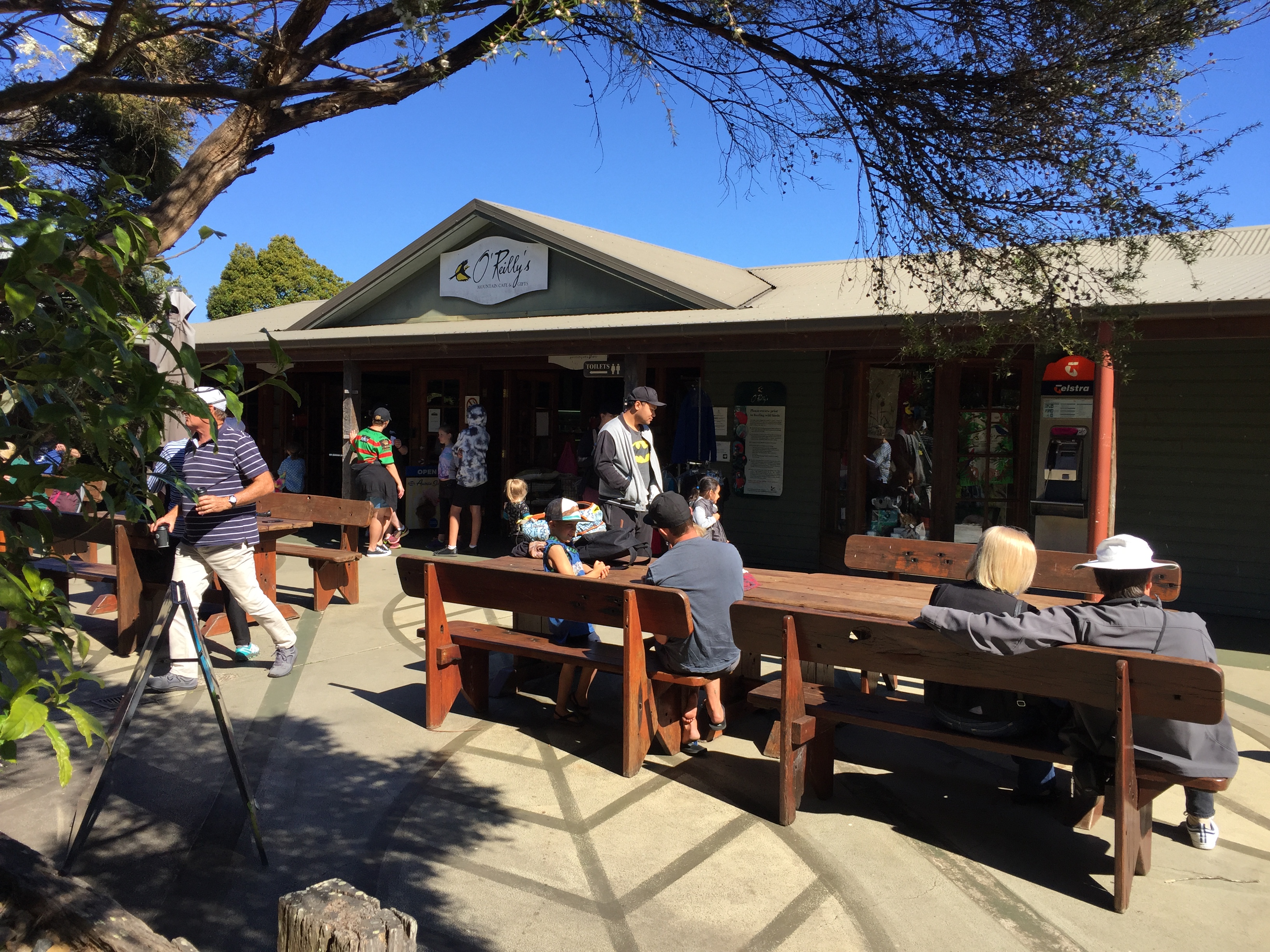 レストラン入り口前のベンチではここで休憩している人で賑わっていました。