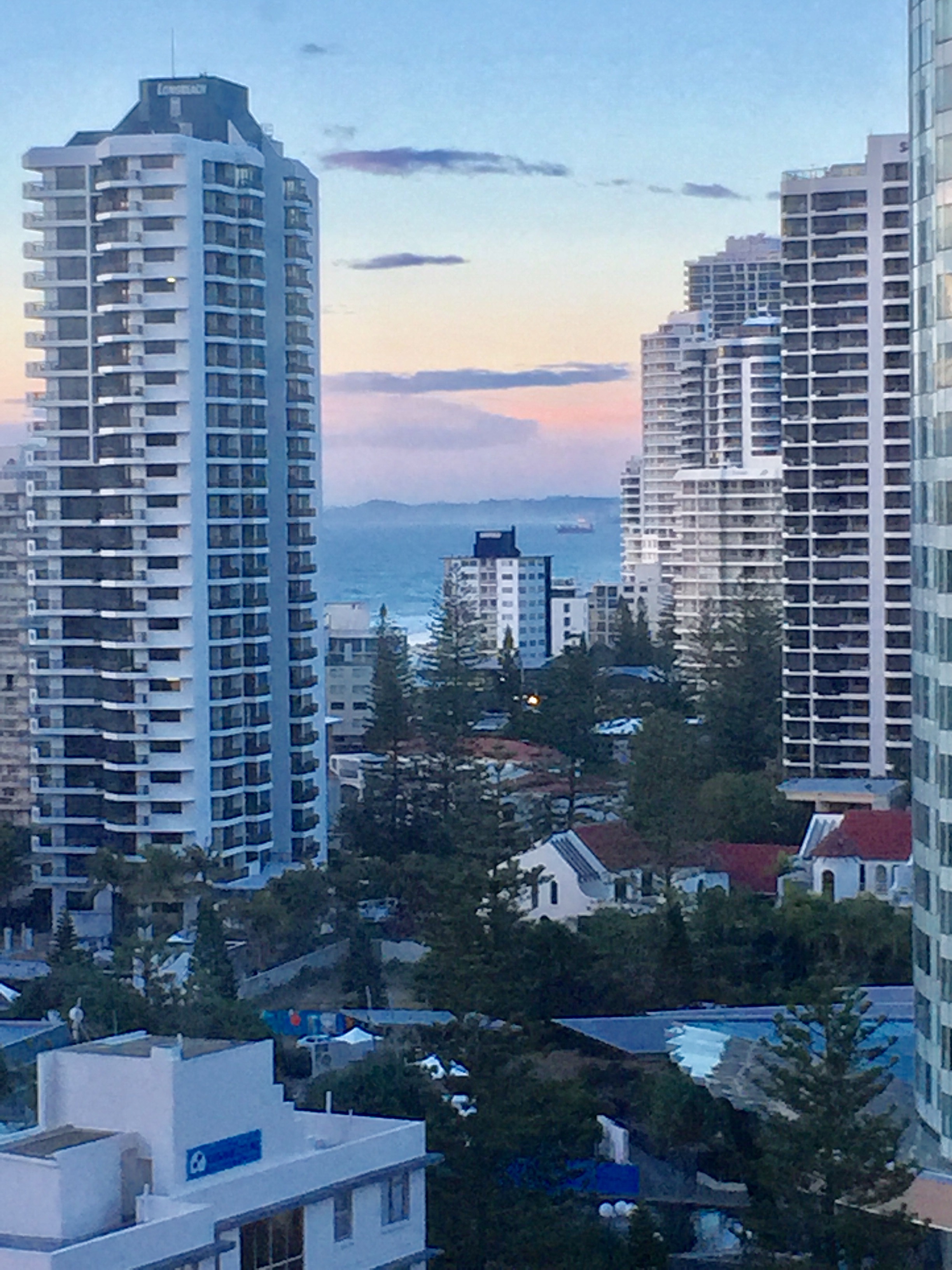 まだ朝6時です。ホテルからの景色も朝焼けです。