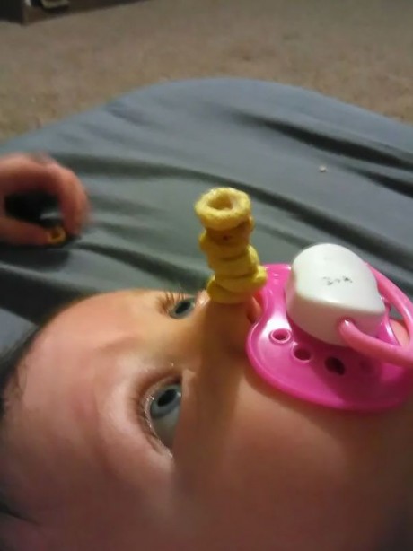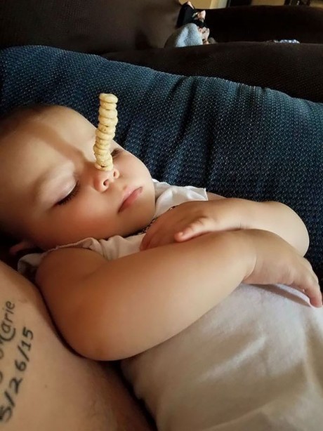 ここ数日、アメリカでは寝ている赤ちゃんにチェリオス(シリアル)を