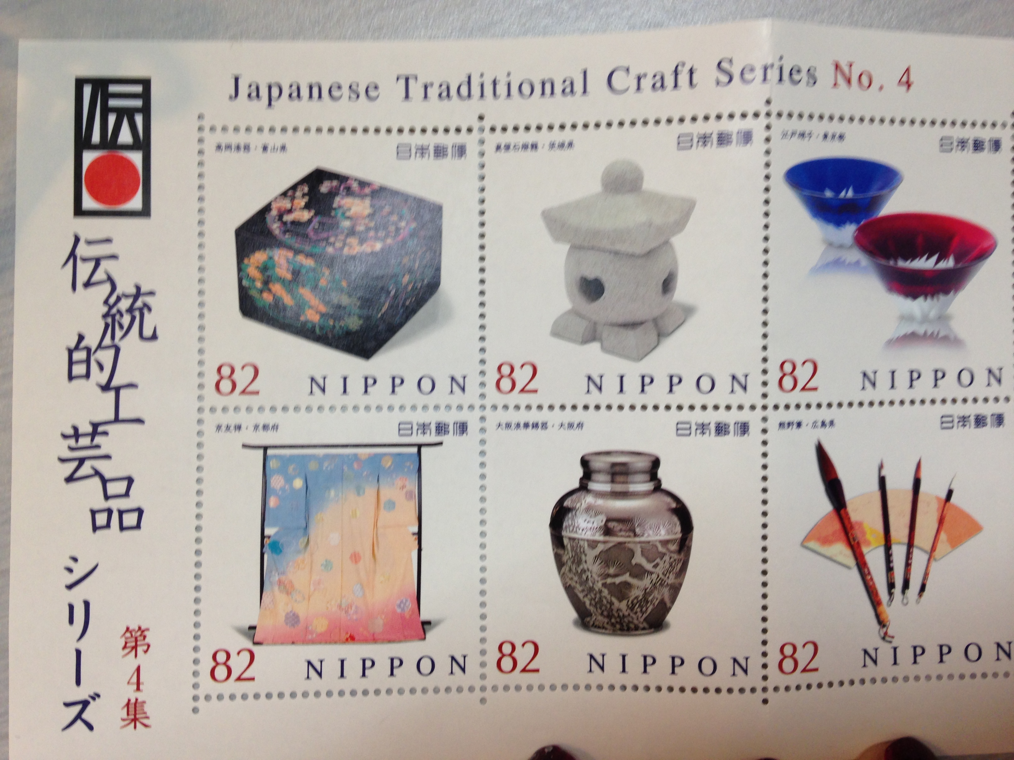 漆器や熊野筆といった、日本の工芸品がプリントされています。