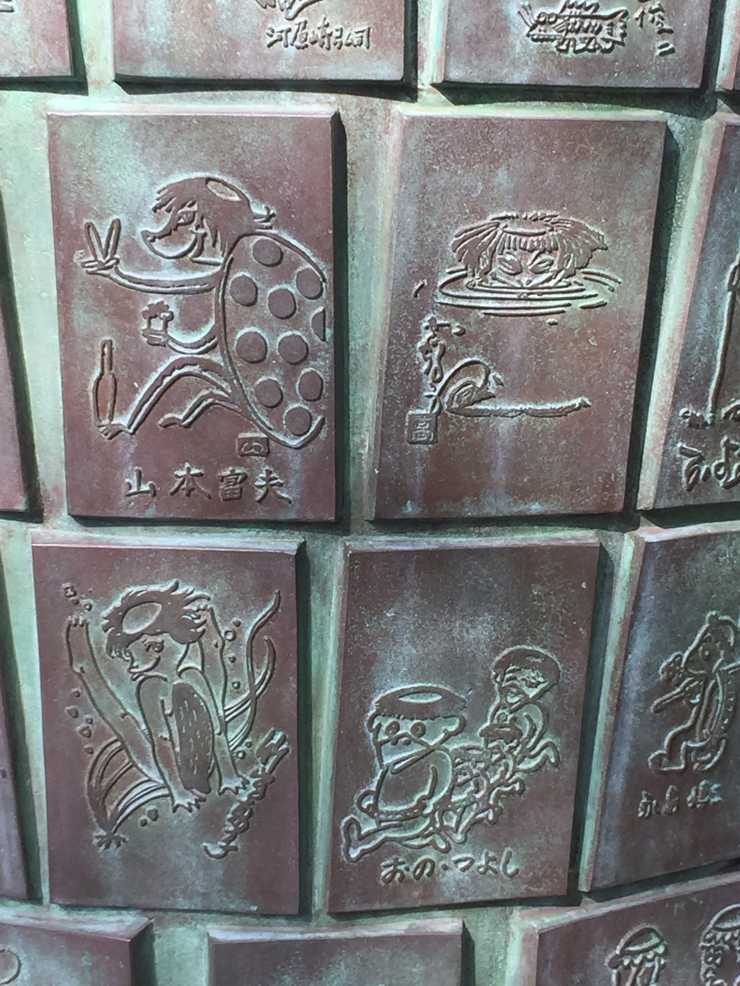 近づくとか河童のすがたがレリーフされています。
