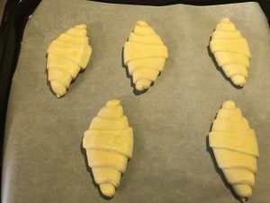 冷凍のクロワッサンを鉄板に並べて20分解凍します。
